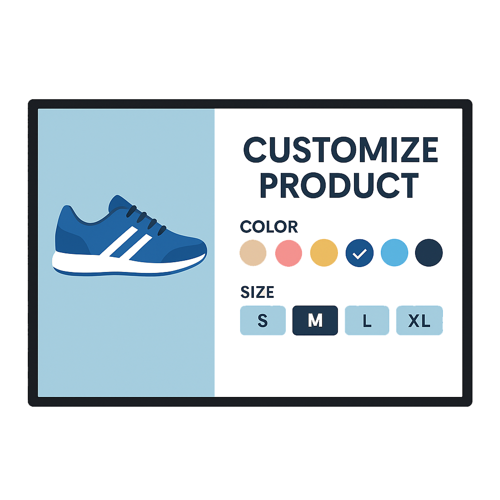 Customers can design or personalize products (e.g., shoes, gifts, or packaging) and preview them instantly.